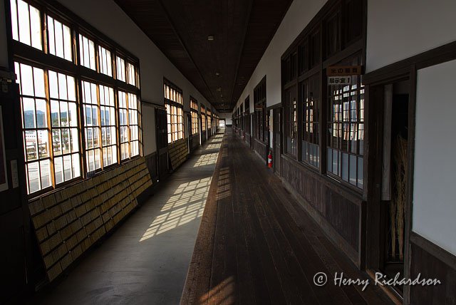 | 109 meter long wooden corridor of 1928 elementary school, Uwa, Seiyo, 2011 |