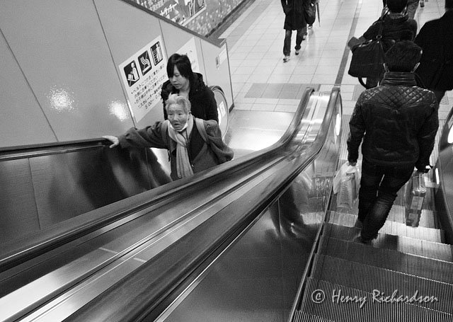 | On the escalator in Sugamo station, Tokyo, 2012 |