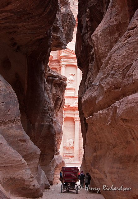 First view of the Treasury from the Siq, Petra