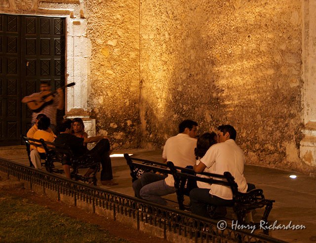 Evening courting outside of the Iglesia de Jesus, Mérida