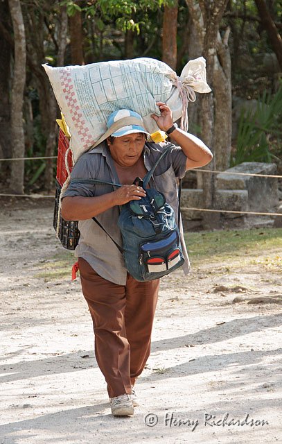 Working hard, Maya ruins at Chichen Itza, Yucatán