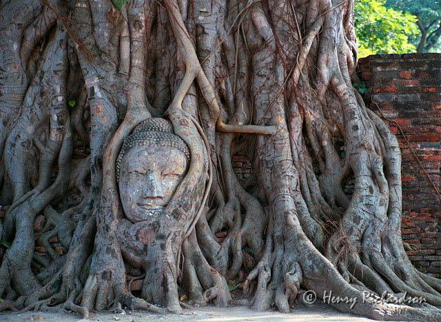 Buddha head embedded in tree in Ayuthaya, 1998