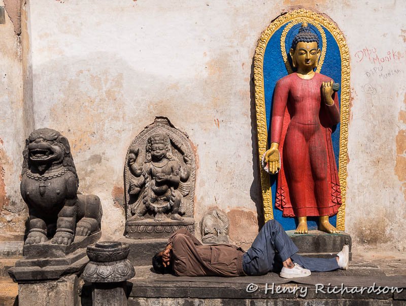Taking a nap at Swayambhunath (Monkey Temple)