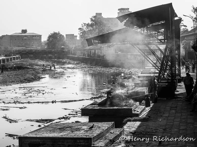 Funeral pyres at Pashupatinath next to the holy Bagmati River |