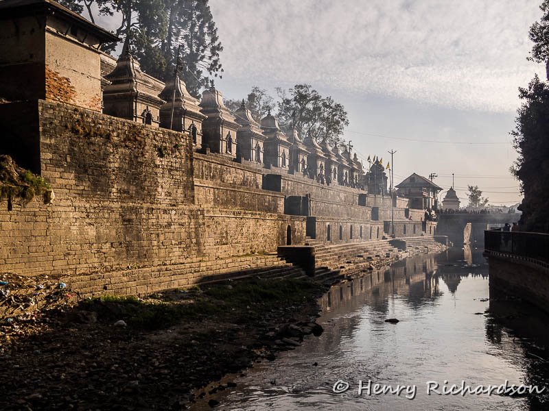 Funeral pyres at Pashupatinath next to the holy Bagmati River