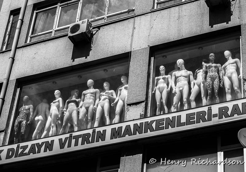| Selling naked mannequins above the sidewalk, Sultanahmet, Istanbul |