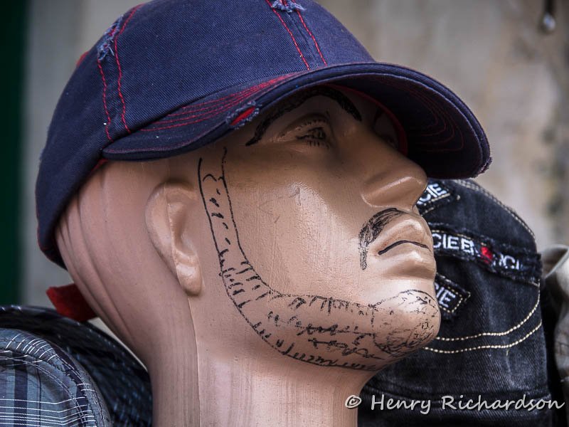 | Beards and mustaches are popular in Turkey so shops like to add them to mannequins -- some more artistically than others :-) |