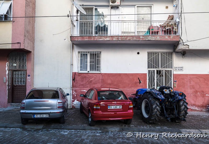 | Cars and tractor parked at home in Selcuk |