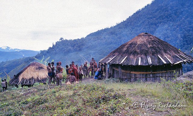 | Morning of day 7 showing the village we had spent the night in, 1995 |